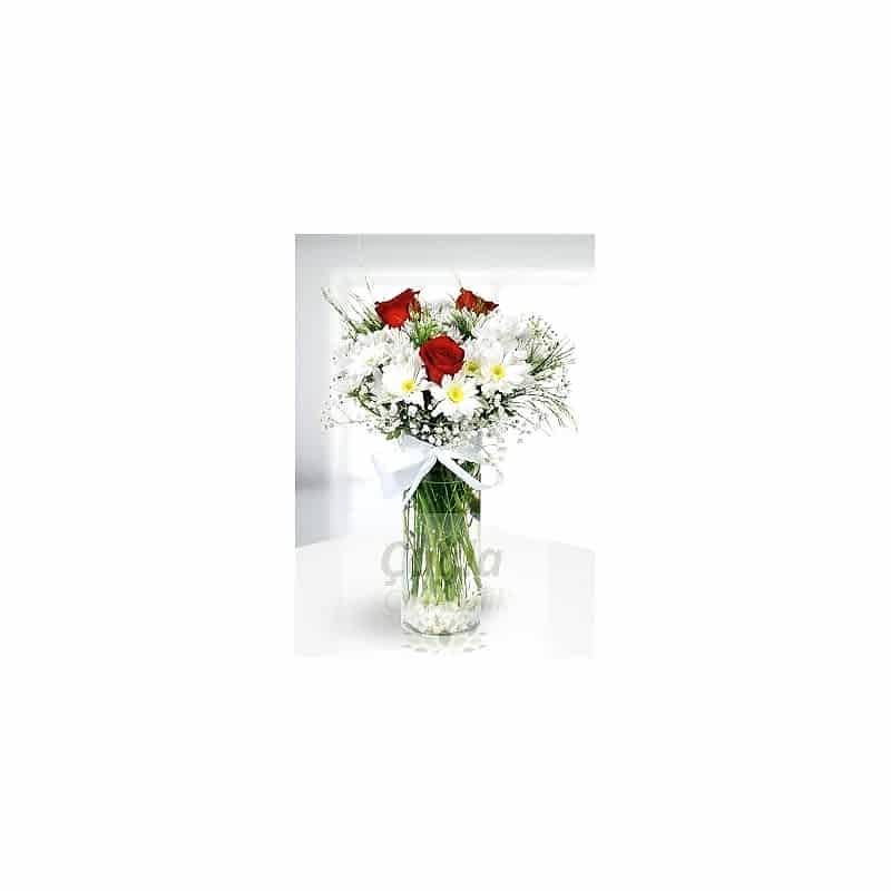 Aşkın en tutkulu haliyle masumiyetin en saf hali tek bir vazoda buluştu! Vazoda Papatya ve Gül aranjmanı, taptaze beyaz papatyaların ferahlığını, büyüleyici kırmızı güllerin enerjisiyle birleştiriyor. Şık cam vazo içerisinde sunulan bu tasarım, sevdiklerinizin evine veya ofisine anında bahar havası getirecek. Gebze çiçek gönder aramalarınızda kalite ve uygun fiyatın adresi olan Çağla Çiçekçilik, bu özel tasarımı sizin için özenle hazırlıyor.