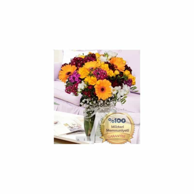 Her mevsimin kendine has çiçekleri vardır. Mevsimin en taze çiçeklerini bir araya getirirken şıklığıyla da göz kamaştıran cam vazo içinde renkli mevsim çiçeği aranjmanıyla yaşadığınız mevsimin en güzel renklerini bir arada bulacaksınız.