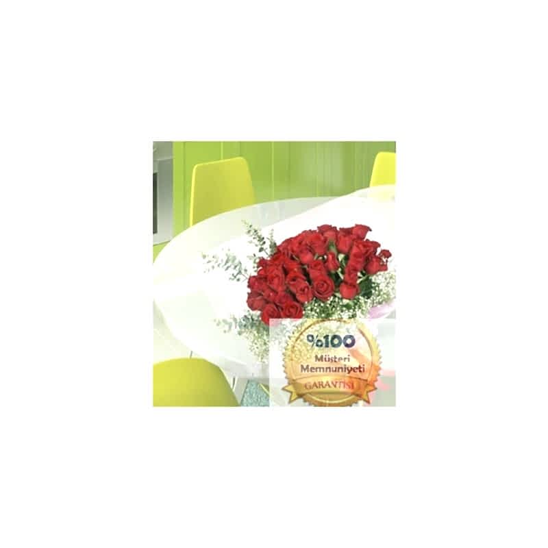 Bu ürünümüzde 1. Sınıf kırmızı güller kullanılmaktadır. Gül buketinin yaklaşık yüksekliği 50 cm dir.